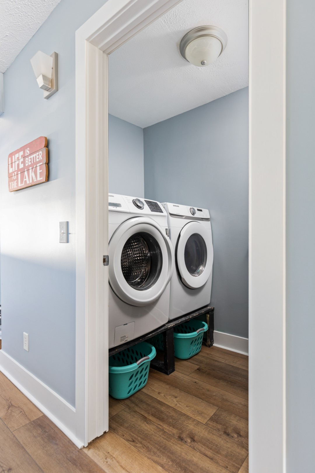 Outside, the lake is your playground. Kids dart between the beach and the water bouncer while the paddleboard glides silently past the dock. The air carries the sound of splashing and the soft buzz of summer afternoons. When the day cools, settle in for sunset—the sky stretching wide and mirrored perfectly in the water, a scene that never looks quite the same twice.