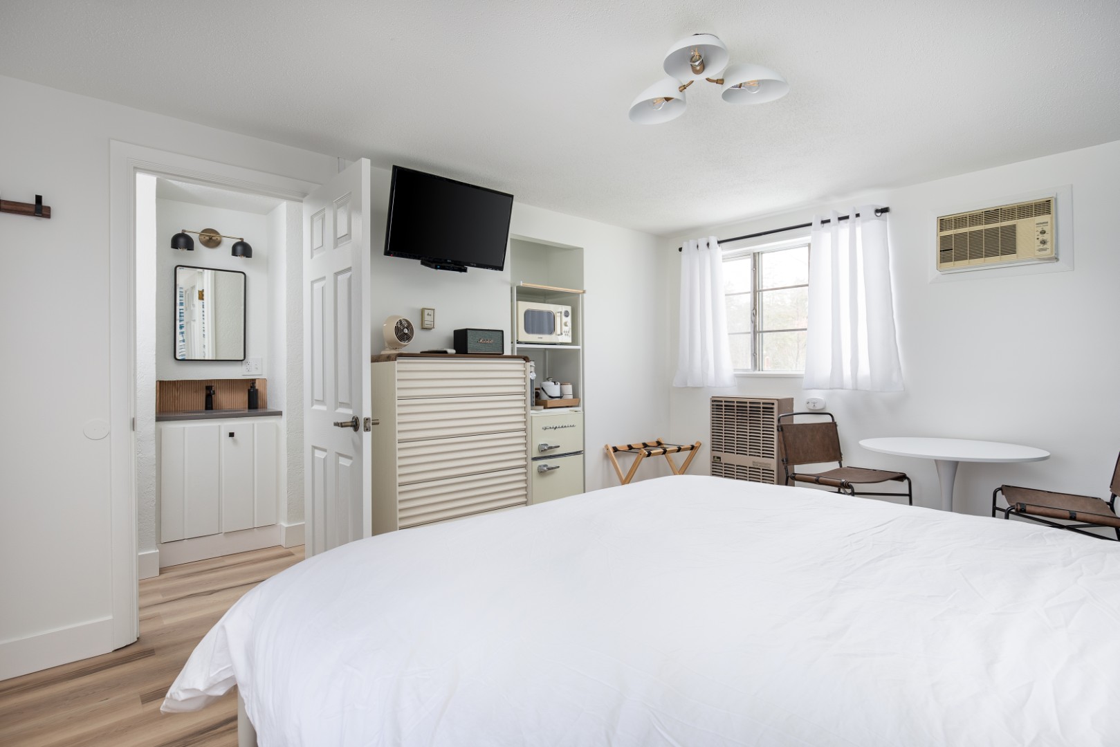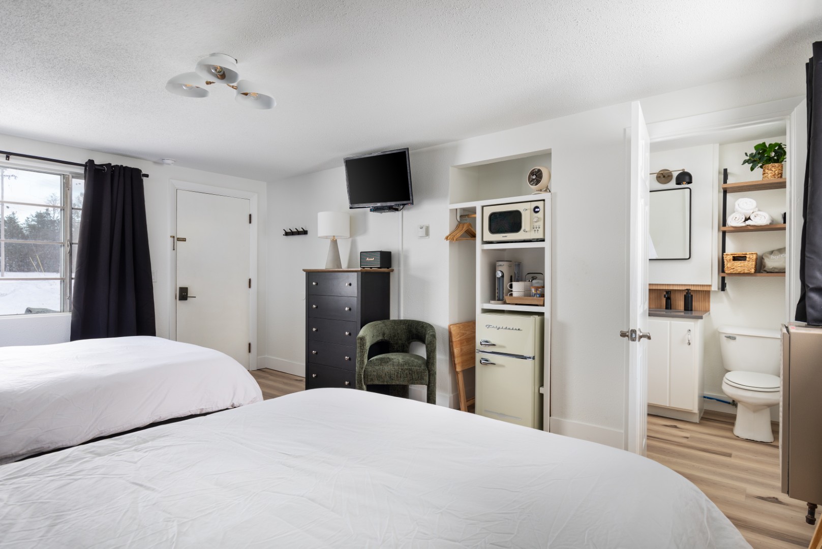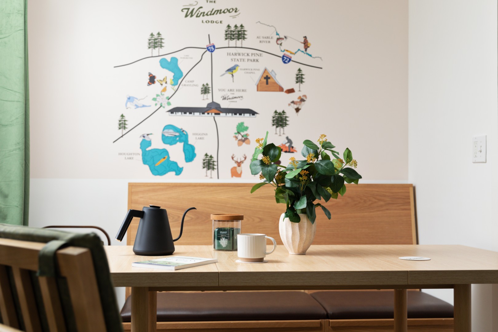 Tucked beneath towering pines and surrounded by the quiet rhythm of Northern Michigan, The Windmoor Lodge feels like a hidden chapter of the northwoods brought gently back to life. Once a classic roadside motel, it’s now a thoughtfully renovated retreat that blends vintage charm with warm, modern comfort—an inviting place where days begin with crisp forest air and end under a sky full of stars.